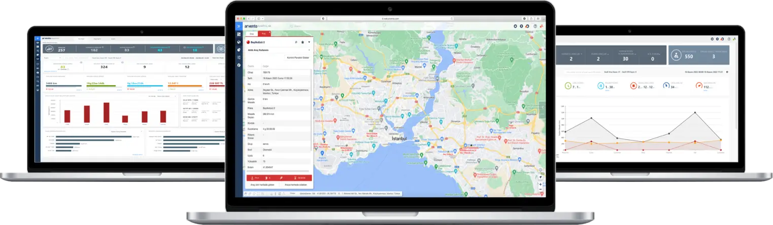 Platform web Arvento dirancang untuk membantu Anda dalam melacak lokasi secara real-time juga memantau kecepatan dan status kendaraan armada Anda. Tentunya, pelacakan real-time ini menjadi kunci untuk mengambil keputusan yang tepat secara cepat.